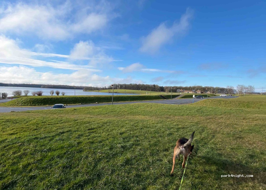 Super parking spacieux avec accès direct sur la piste cyclable qui fait le tour du lac. le soir des locaux viennent se garer pour discuter moteur allumé chacun dans sa voiture et font des accélérations juste à côté du camping car à l’en faire trembler … ils laissent l’endroit sale avec leurs déchets au sol. Et tout ça jusqu’à 23h-minuit. On était à deux doigts de réveiller les enfants de partir