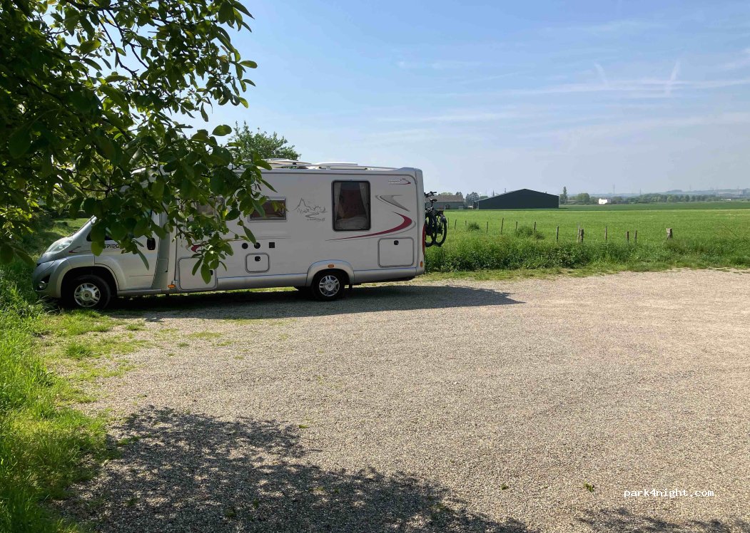 Parking lot at very good restaurant brasserie de grens Eijsden, parking, €10 with food the parking costs are waived. Beautiful view from the parking lot. The restaurant is strategically located for visiting South Limburg. From the restaurant cross the road for a beautiful walking route. There is room for only two campers, so call to be sure of a place!