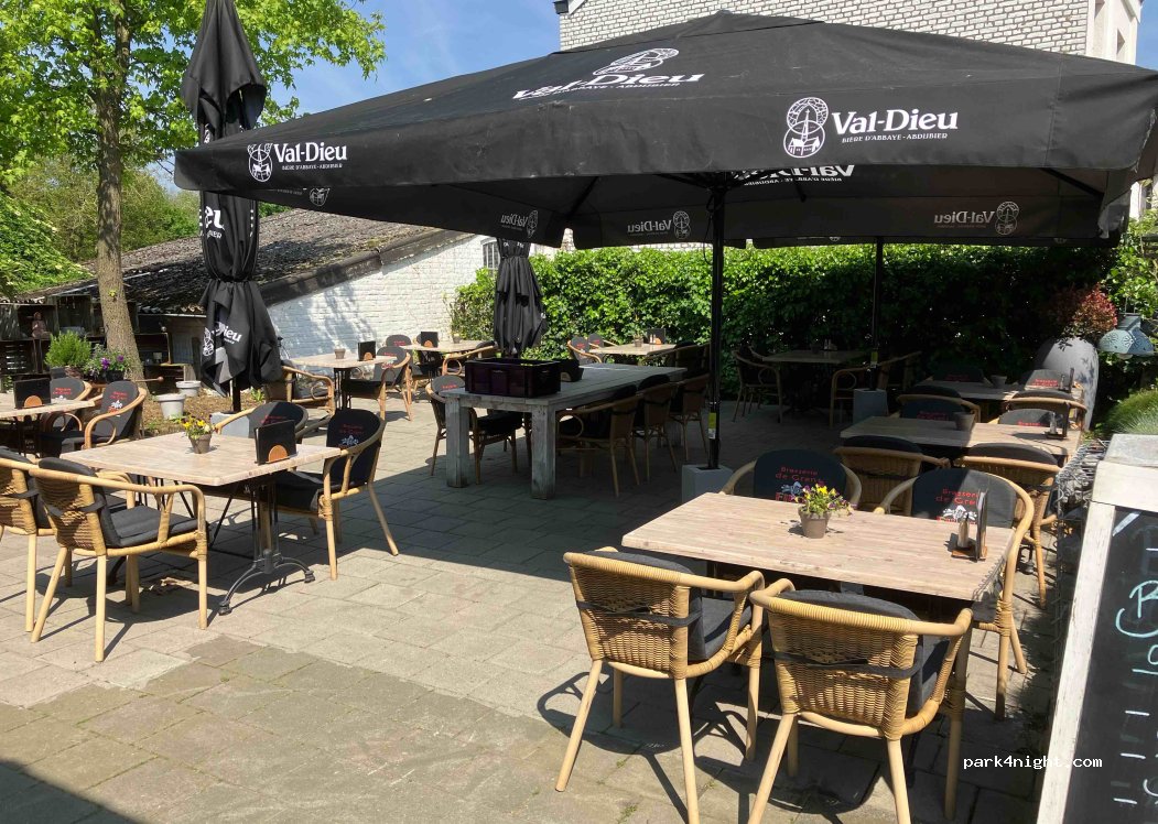 Place de parking au très bon restaurant Brasserie De Grens Eijsden, parking, 10 € pour la nourriture, les frais de parking sont supprimés. Belle vue depuis le parking. le restaurant est stratégiquement situé pour visiter le sud du Limbourg. Traversez la route depuis le restaurant pour un magnifique parcours pédestre. Il y a de la place pour seulement deux campeurs, alors appelez pour être sûr d'un endroit!