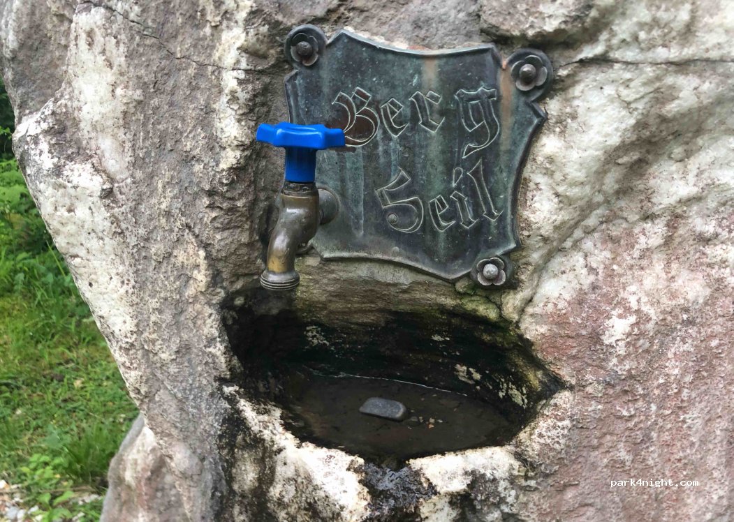 Attention: no camping or overnight stays in the spring area and only park in designated parking spaces (fees apply). A little way up from the parking lot on the right hand side is a fountain (tap with thread and good water pressure) and a public toilet