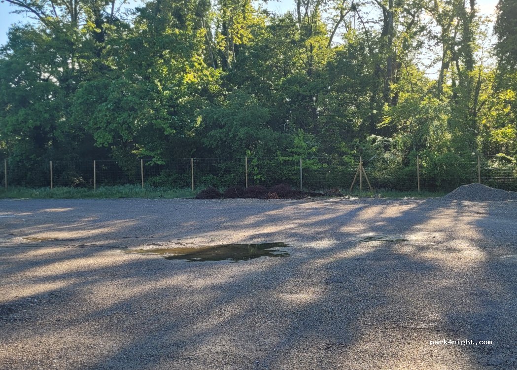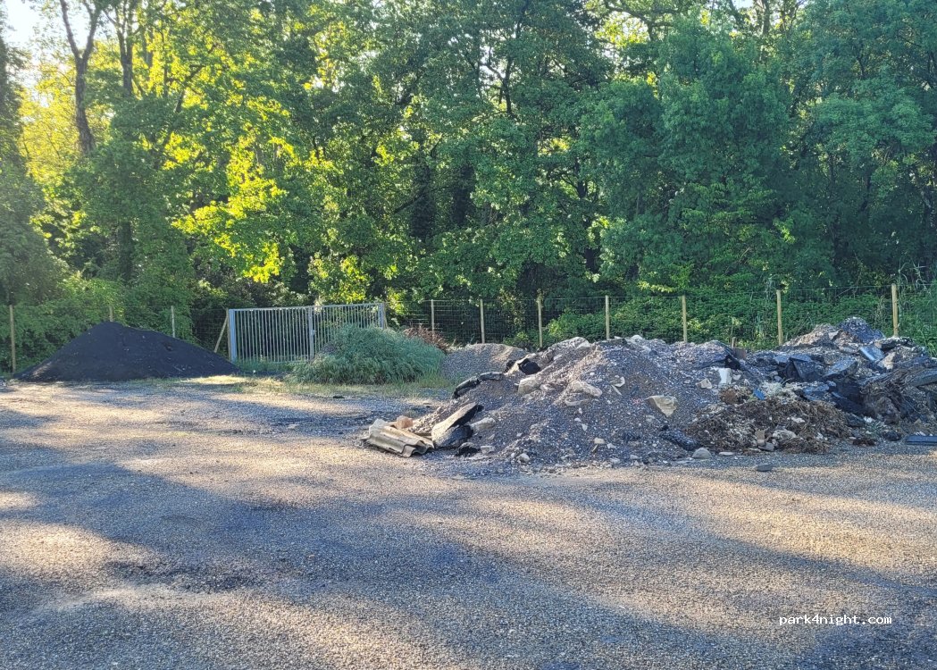 Grand emplacement avec gravettes, idéal pour se reposer ou passer la nuit, petite route pas loin, une boîte échangiste se trouve pas loin, ça risque de circuler un peu le samedi soir