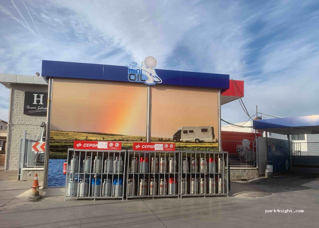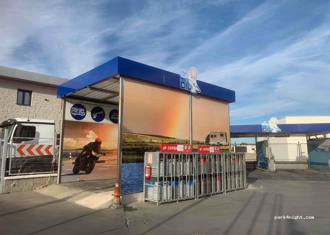 La gasolinera cuenta con lavandería, pistas de lavado para autocaravanas, bombonas de butano y tienda donde venden productos de alimentación como pan, embutidos, bebidas… Por 5€ o si repostas combustible, puedes llenar agua no potable o vaciar las aguas negras o grises. Las trabajadoras son muy amables y lo tienen todo muy limpio. Y el precio del combustible es el más barato de la zona