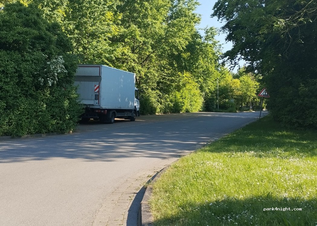 Freibadparkplatz mit großen Bäumen tw. Wiese, eben, standen ganz allein, auch am Morgen alles ruhig, obwohl Samstag. Weder nachts noch morgens Verkehr. Waren morgens bei Ikea frühstücken, keine 5 min entfernt. Sehr zu empfehlen. Alles sauber, bitte weiterhin dafür sorgen.