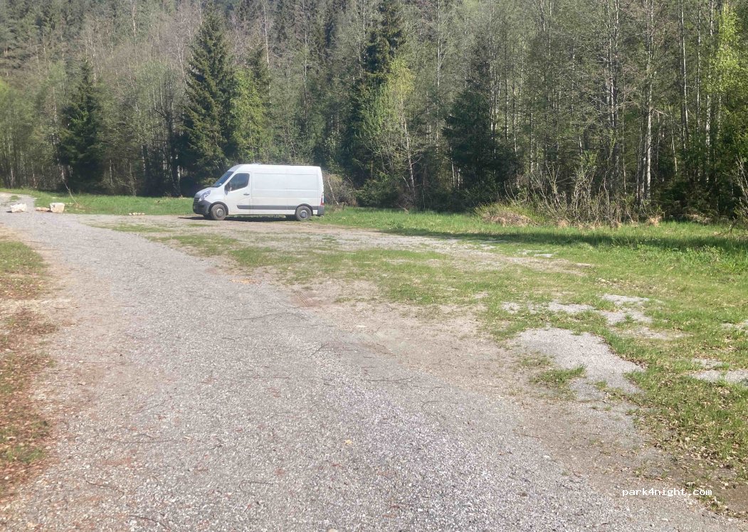 Petit parking de randonné au bout d’une route, situé à 100m d’un champ de tir, mais je n’ai rien entendu en pleine semaine entre 19h et 11h, la rivière coule à côté donc un peu de bruit mais cela ne m’as pas dérangé de tout. Lieu en pleine nature un peu plus tranquille que le spot juste avant, il y a de la place pour une petite dizaine de voiture/ camping-car mais j’y était tout seul.