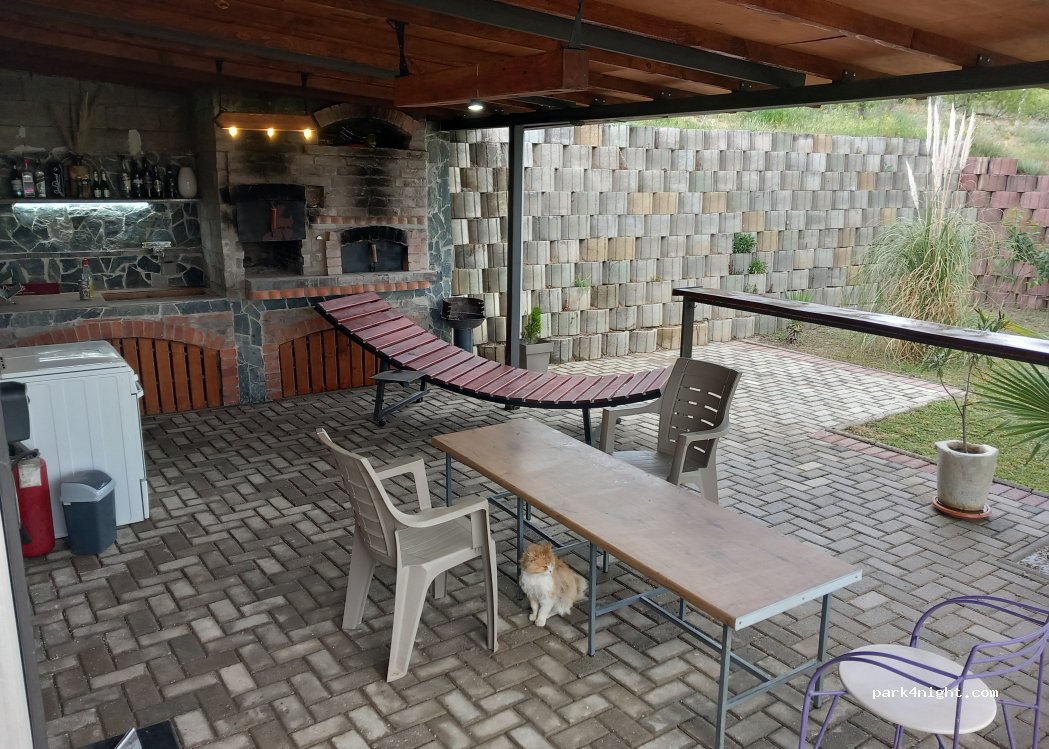 I have a motorbike and a tent, the owner wasn't home, but we did everything over WhatsApp, very friendly! I really like the common area. The place has a kitchen, living room, BBQ, wifi, and wash machine. One toilet and shower, but very good. Not a lot of space for RVs, but it seems they're expanding it Dirt road is ok with motorbike, Maps tells you to stop too early, see his instructions