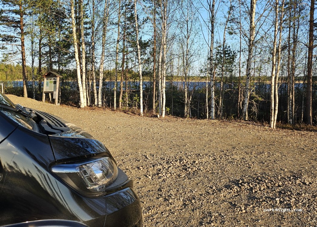 Reserva Natural de Linnunsuo. Aparcamiento al lado de una calle tranquila. Senderos para caminar, torre para pájaros, chimenea, baños exteriores.