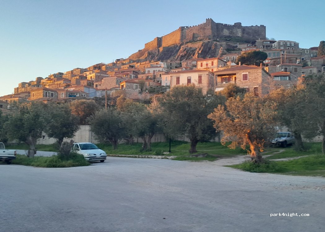 Belle vue sur le kastro. Fin de semaine et saison : parking des autocars sur celui du bas, se garer en conséquence près de la sortie. A noter : mi Mai, le camping est toujours marqué "business closed" malgré une info du Petit Futé qui disait que ça avait été repris par un jeune couple.