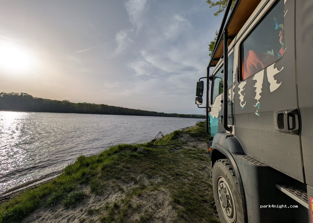 Der Weg ist manchmal fast unbefahrbar - wahrscheinlich nichts für Wohnmobile. Sonst alles traumhaft, man kann direkt am Wasser parken. Wir sind noch ein Stück weiter bis zum "Kiesberg" (100m weiter) gefahren, dort gibt es Feuerstellen (auch wenn wir sie nicht benutzen wollten) und zwei natürliche Parkbuchten, in welchen man unter Bäumen mit dem Kofferraum bis zur Donau fahren kann.