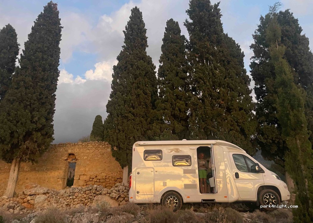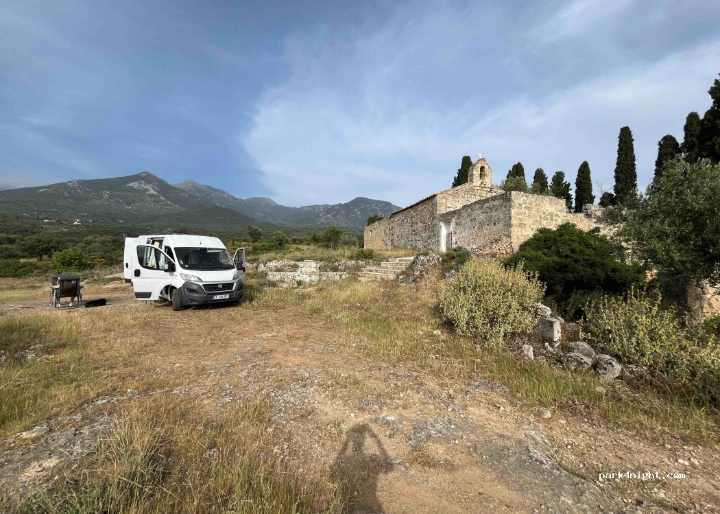 Lieu vraiment incroyable en pleine nature. Il faut emprunter un petit chemin assez cahoteux sur 500m mais cela est passé facilement avec un L2H2. Coucher de soleil magnifique et bonne réception 5G. À l'abri de l'ancien monastère donc non visible de la route. Nous n'avons vu personne de la soirée, et le matin en sortant du chemin 2 locaux nous ont fait signe pour nous dire gracieusement bonjour