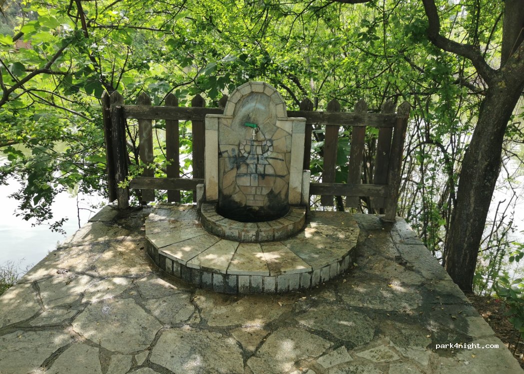 Tap next to the dam. There is another one on the other side of the dam as well.