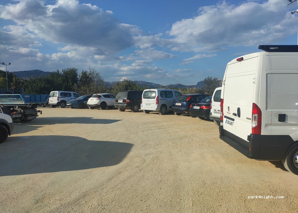 Plaza de aparcamiento público cerca del casco antiguo de Polop a pocos minutos del casco antiguo. Confirmado por un policía, se puede dormir durante la noche siempre y cuando no se coloquen sillas afuera ni se abra el toldo. el parking dispone de vigilancia 24h con cámaras.