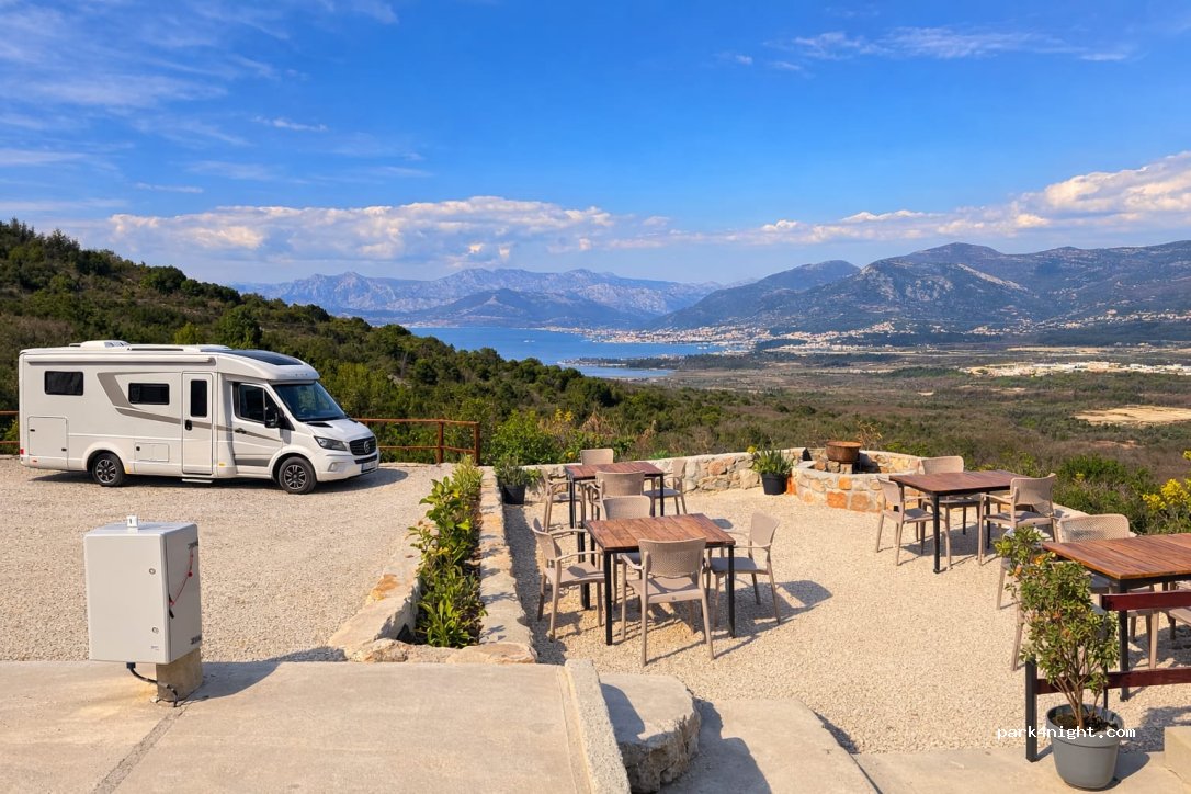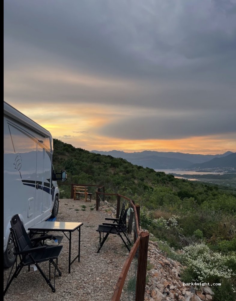 Geweldige plek met fantastisch uitzicht op de baai van Kotor en het plaatsje Tivat. Paar dagen heerlijk gegeten op de camperplaats. Makkelijk te bereiken. Lieve familie om te verblijven.