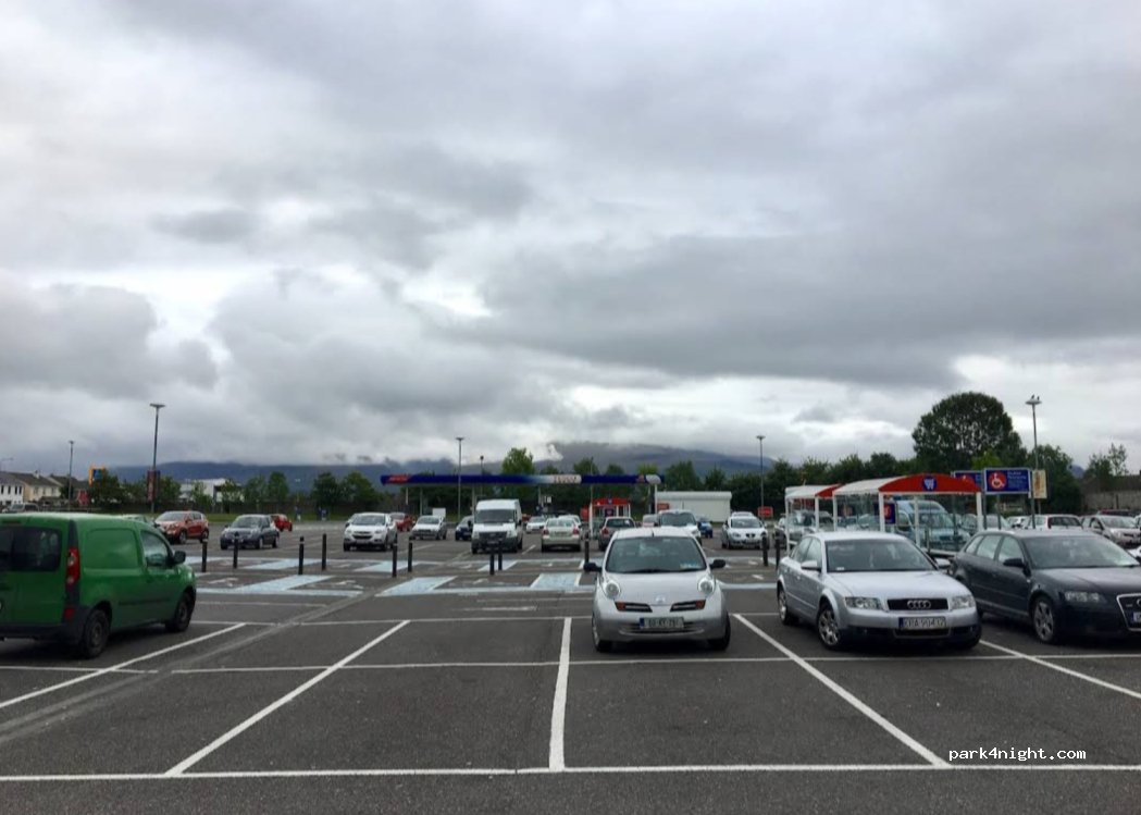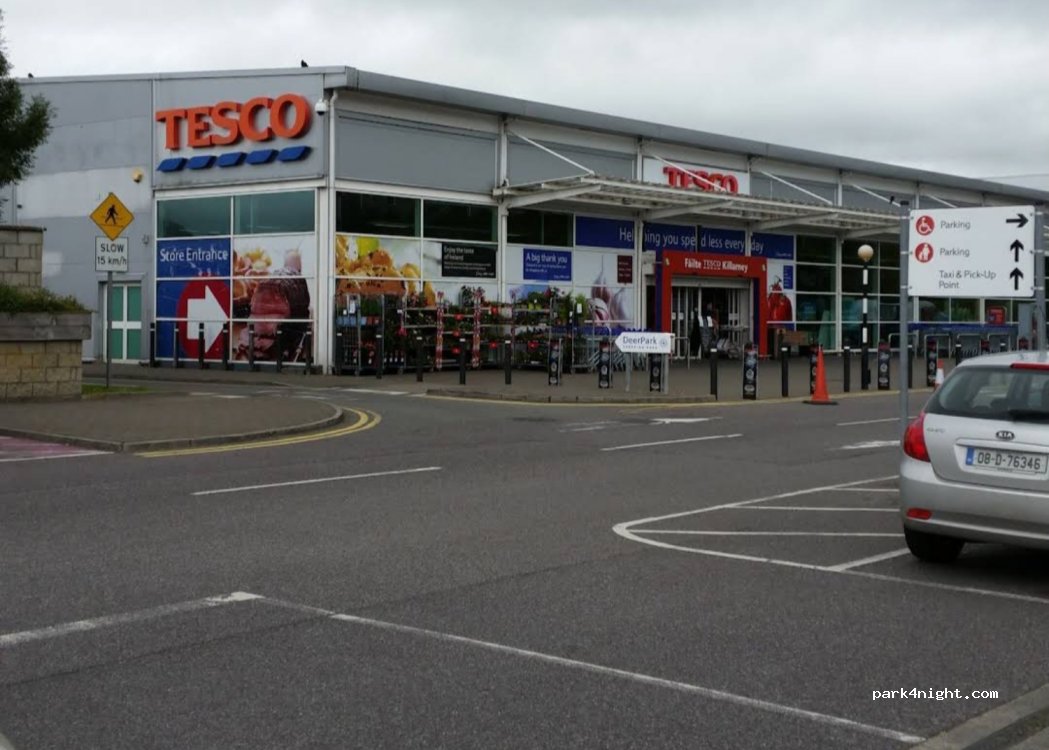 Tesco supermarket parking without barrier. We recommend parking on the left at the end of the parking lot so as not to disturb supermarket customers. The center is ten minutes away and the national park is two minutes away.