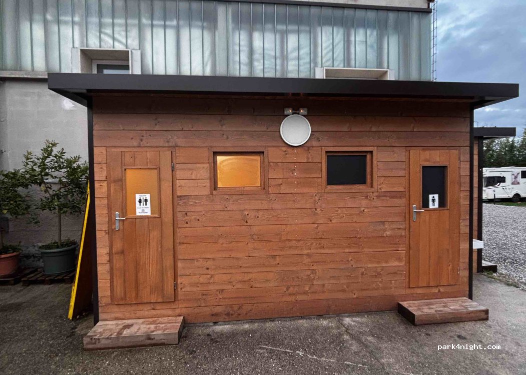 Extreamly overpriced parking lot, not a campsite. In the middle of nowhere, next to the loud main road, they asked the same price as in the higher rated campsite, directly on the Lido beach, Scarpiland*** Cavallino: €49 for a motorhome and 2 adults. Zero shade, 6m2 artificial grass per motorhome. 1-1 nice and clean bathroom.