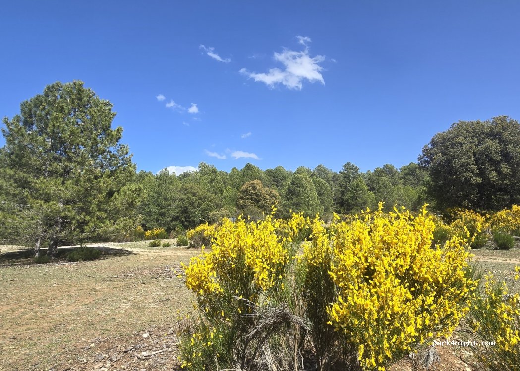 Am Rande einer Nebenstraße mit sehr wenig Verkehr und der Möglichkeit, Schatten durch Pinien und Eichen zu spenden. Es ist ein cooler Ort, weil er fast 1800 Meter über dem Meeresspiegel liegt und von Natur umgeben ist. Umgeben von Wäldern.