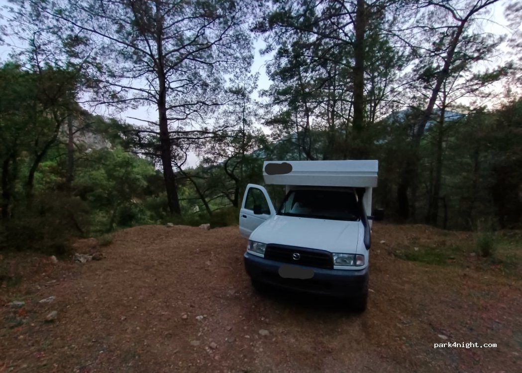 Small parking space on an off-road track. 2-3 small fords when approaching from the south. Small river further down. Good reception. Hikers and 3 vehicles with a guided off-road tour passed by.
