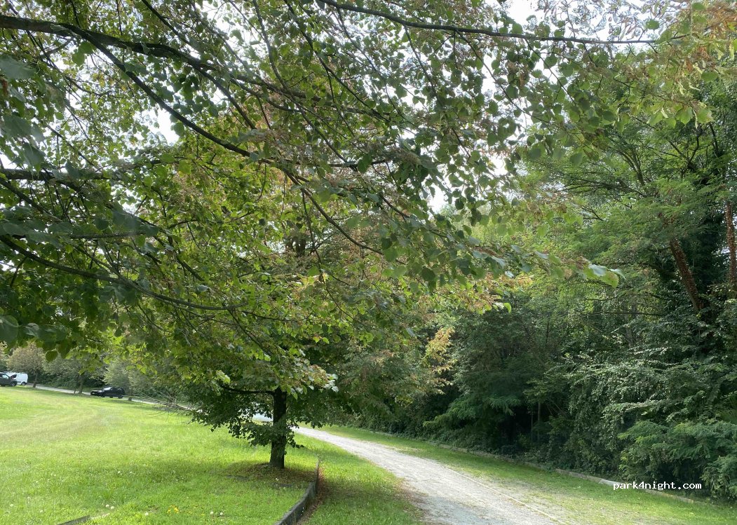 Parcheggio grande e verdeggiante, per accedere all'ex Idroscalo di Lisanza, ora adibito a parco, con un grande prato e panchine. Ideale in settimana perché abbastanza poco frequentato.