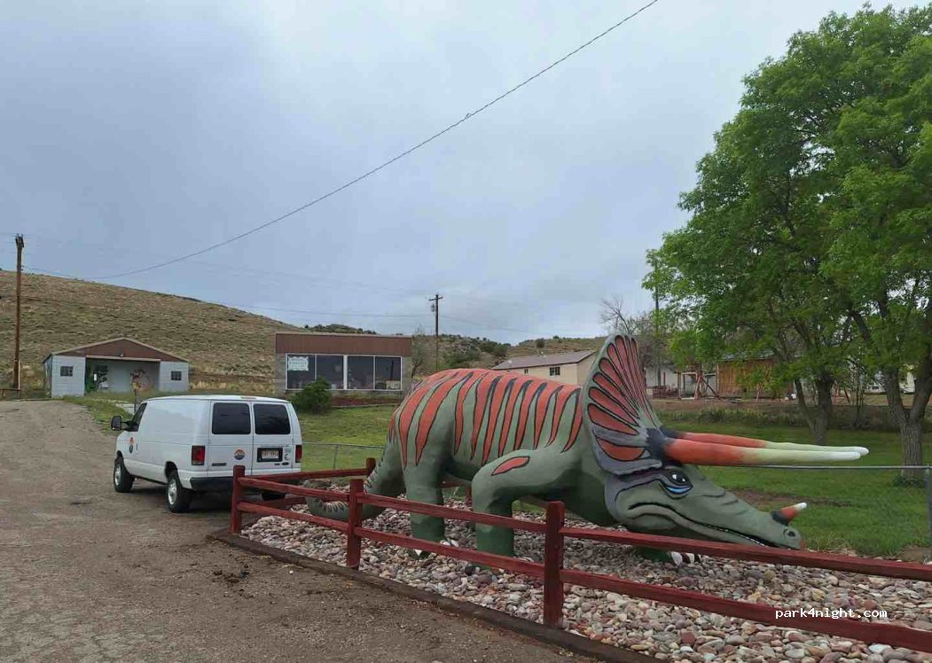 Nous avons dormi près de la statue dinosaure une nuit, peu bruyant, à proximité de toilettes publiques munis de douches chaudes.