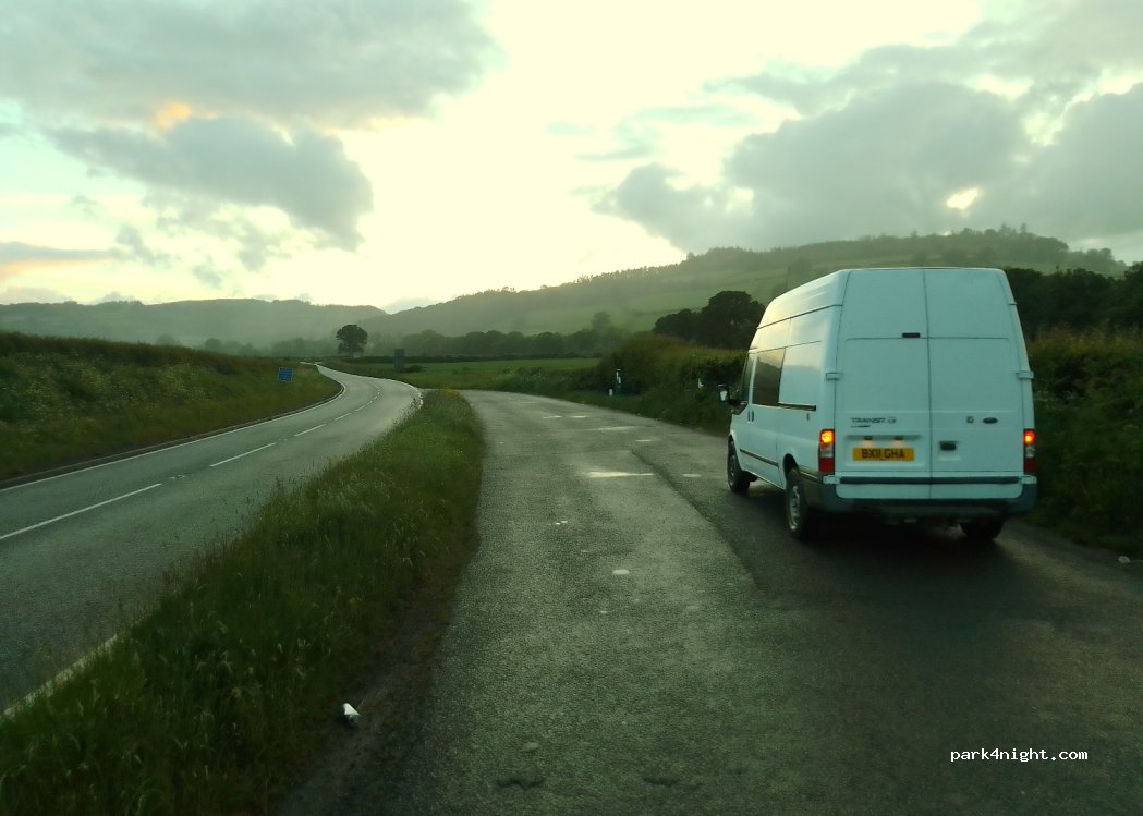 Lay-by on A40. close to road so not very quiet.