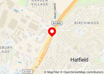 Paid parking at the Premier Inn Hatfield. Brewers Fayre restaurant is next door also for food, drinks and toilets.