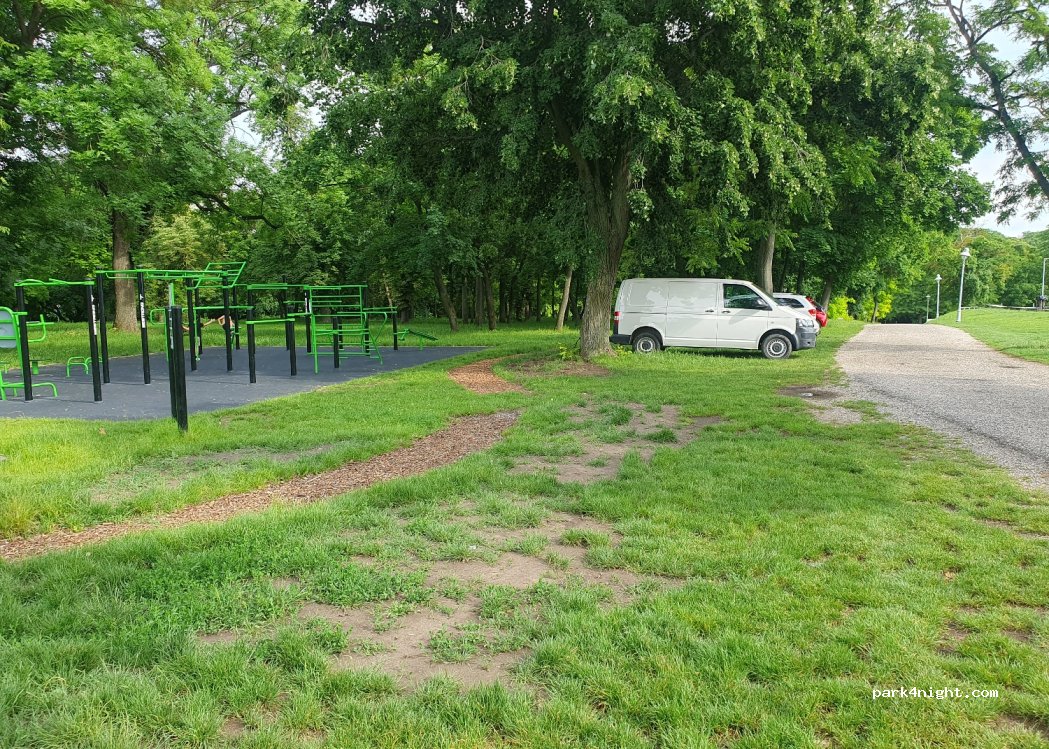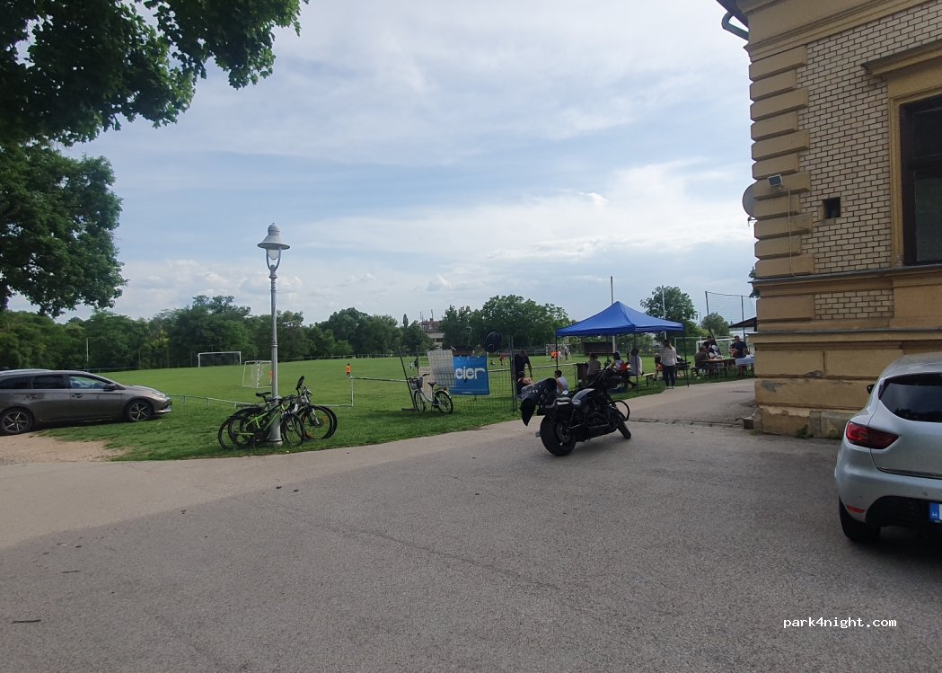 In Velence Topart út/ Gárdonyi út. 50m after the junction turn left to access the Wenkheim-Kastely (old castle) sports field, fitness forest with new fitness facility and running path under trees. 200m as the crow flies to Lake Velence, swimming lake, grill restaurant, pizzeria. 800m to the water skiing facility, quiet only on Saturdays and Sundays, some football games! So far no parking fee.
