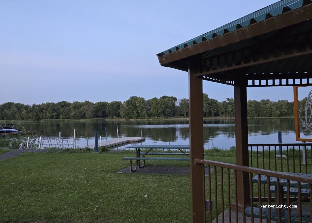Bel endroit calme. 3 tables de picnic . 1 gazebo. Plusieurs bancs. Quai pour mettre petite embarcation à l'eau (canot ou kayak) Il n'y a pas de jeux pour les enfants. 1 toilette portative. 1 prise électrique sous le gazebo pour recharger petit appareil.