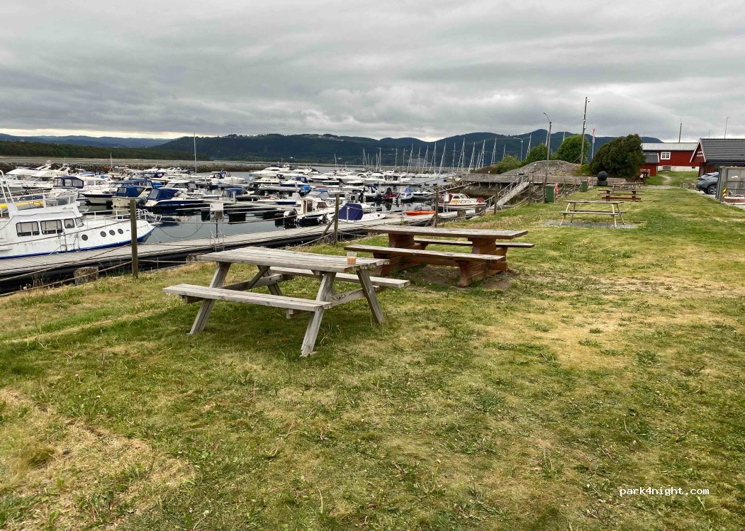 Gravel parking at the marina. Picnic tables. A beach is 300 m away. Camping prohibited!