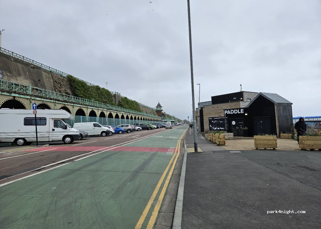 Un bon endroit pour se garer dans Brighton, payant la journée mais pas la nuit. Pas mal de passage mais assez calme la nuit (en mars en tout cas) et surtout juste en face de la plage et à côté du centre ville!