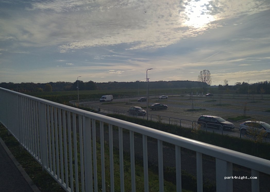 Très grand parking presque vide tranquille aux premiers abords, mais nous avons été réveillés à 2h du matin par des voitures qui roulaient vite sur le parking, puis à 6h15 par les cloches de l'église.