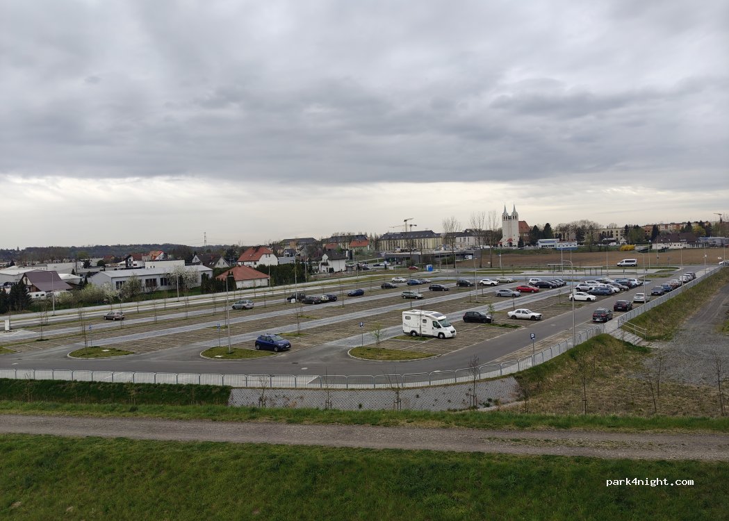 The place is a Opole’s car park made for people not to use cars in the center of town. There’s a bus stop, so it’s very easy to do sightseeing without paying for parking lot in the city. The place is flat, there’s some trash cans around the place and portable toilets. We’ve slept here one night, it was calm and the parking lot was unoccupied.