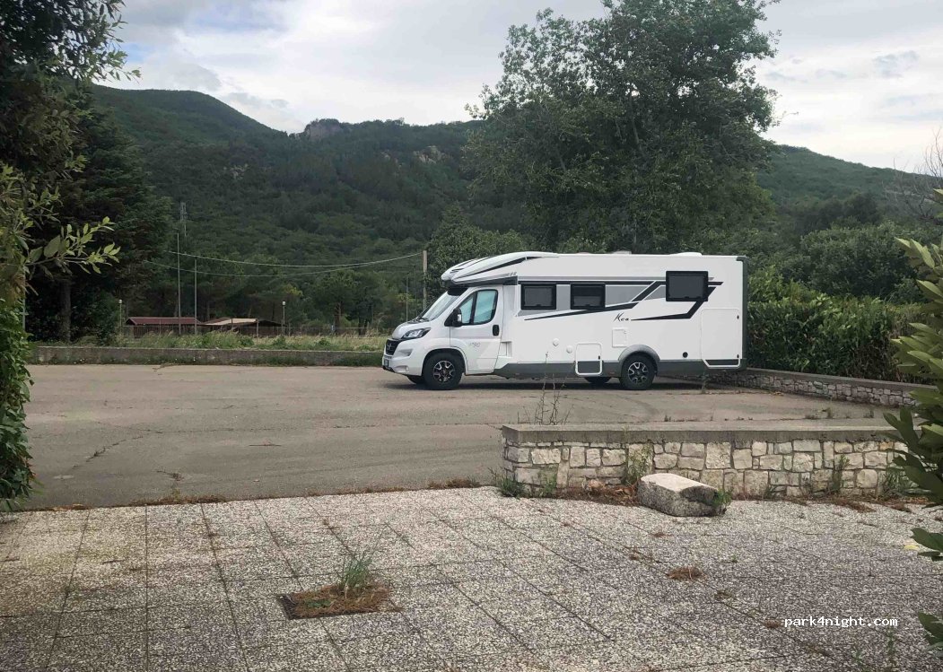 Ampio parcheggio immerso nella natura adiacente al Santuario. Usato per una sosta a pausa pranzo nel tragitto dal Tirreno/Adriatico. Nelle vicinanze numerosi cestini raccolta differenziata, molte fontanelle senza acqua, piccolo parco giochi e bar. Nessun servizio camper.