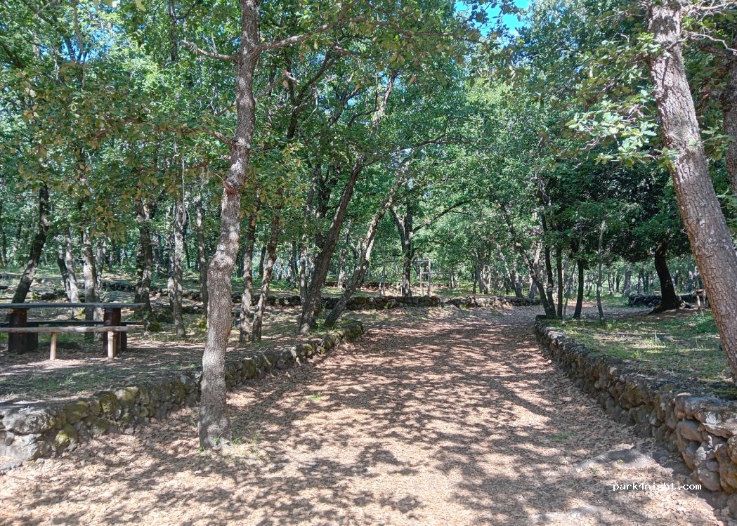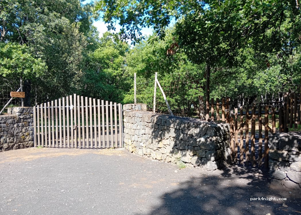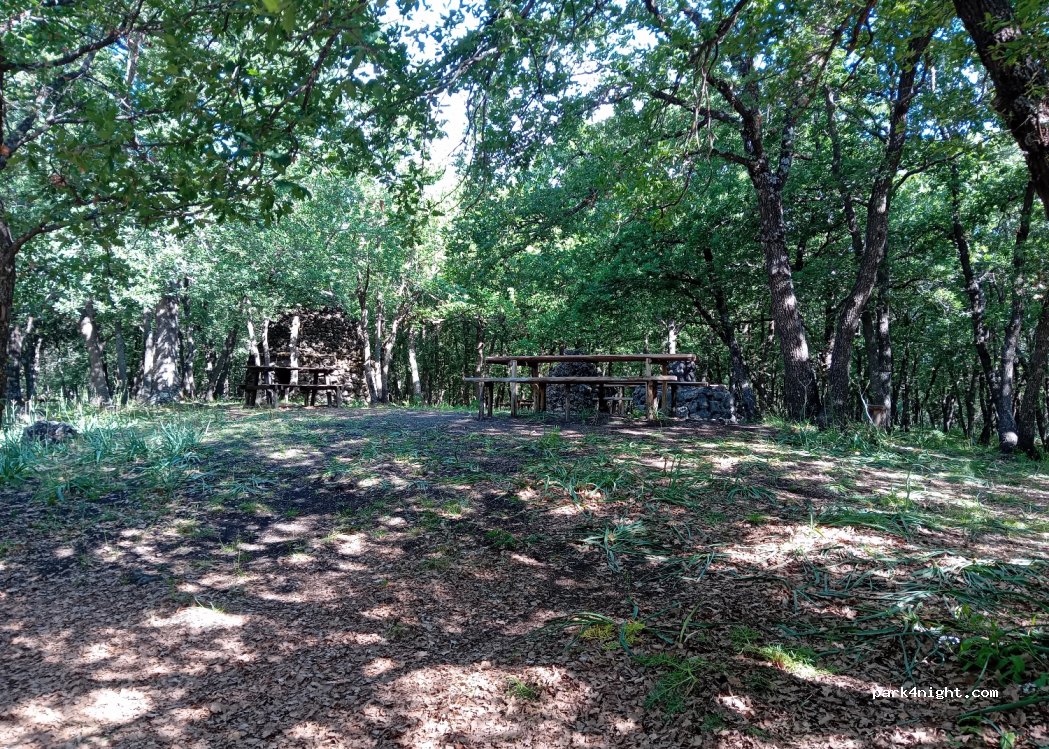 Picnic area equipped with plenty of tables, barbecue, pizza oven. Toilets, several non-potable water points for drinks, very shaded, calm. Access by path between walls rather wide access, van ok. during our visit the large gate is closed, no access to the tables by car, small gate open. Very clean place to preserve.
