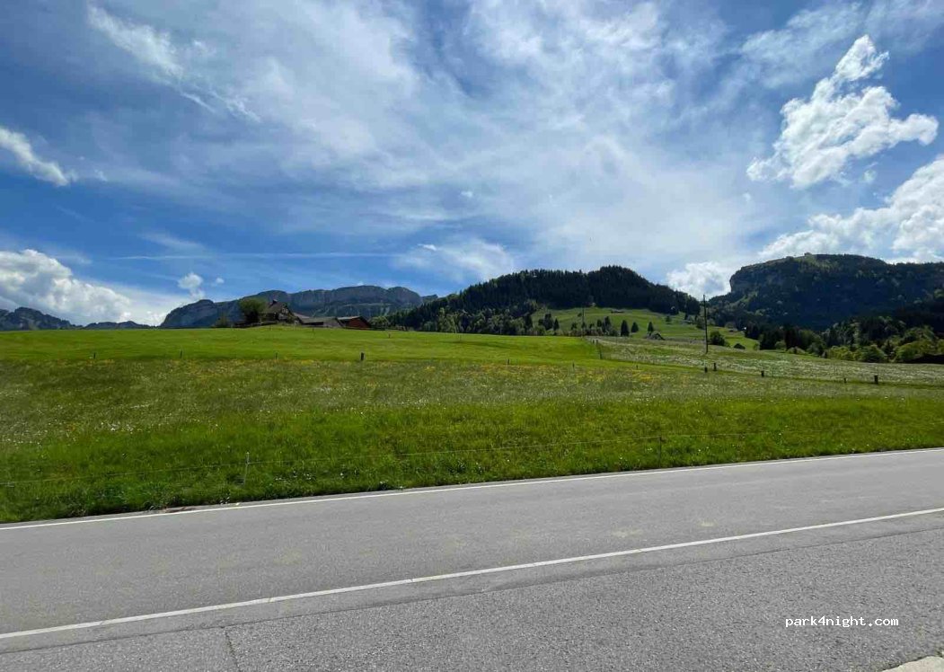 Piękne miejsce na nocowanie. Cicha okolica, słychać dzwonki alpejskich krów grające do snu. Po posesji biega kot właścicielki, który umila spędzony tam czas. Właścicielka bardzo miła, mówi komunikatywnie po angielsku. Dostępna woda, spust wody szarej oraz toalety. Polecam na nocleg w trakcie zwiedzania Szwajcarii.