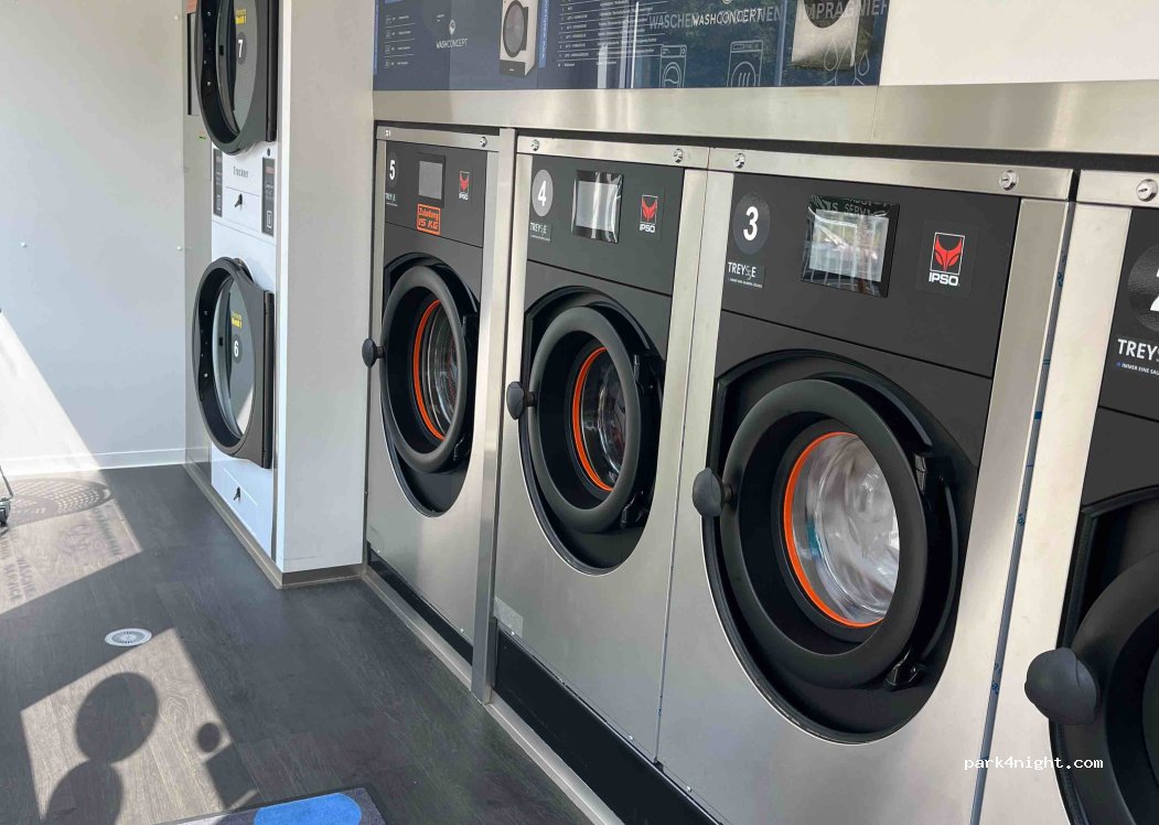 Alles sehr neu und sehr sauber, eine 15kg Maschine, vier normale Waschmaschinen und zwei Trocker mit verschiedenen Temperaturen. Danke an den Betreiber , wir kommen gern wieder
