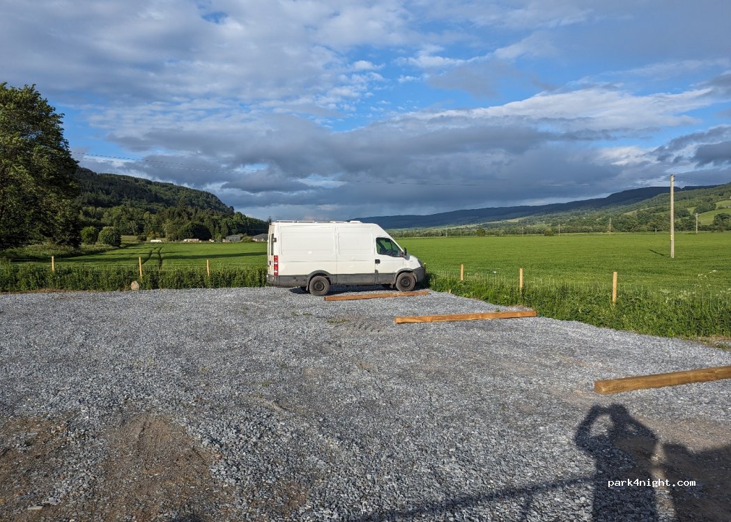 I had spent the day in Pitlochry and looking for a stopover for the night. Someone mentioned this Aire and I just turned up and there was plenty of space for me. Very well situated with facilities. Lovely walks. And friendly owner.