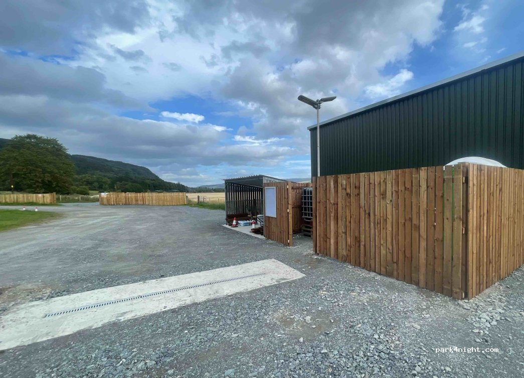 Aire vraiment sympa, on sent l'effort fait car on ne trouve pas d'aires comme en France au royaume uni d'habitude. Vidange des WC possible mais pas des eaux grises. 4 ou 5 places, poubelles et tri à disposition. 10 livres la nuit et 5 livres pour vidanger les WC. Caméra de surveillance sur place. Coin tranquille. Vraiment très contents d'avoir trouvé cet aire.