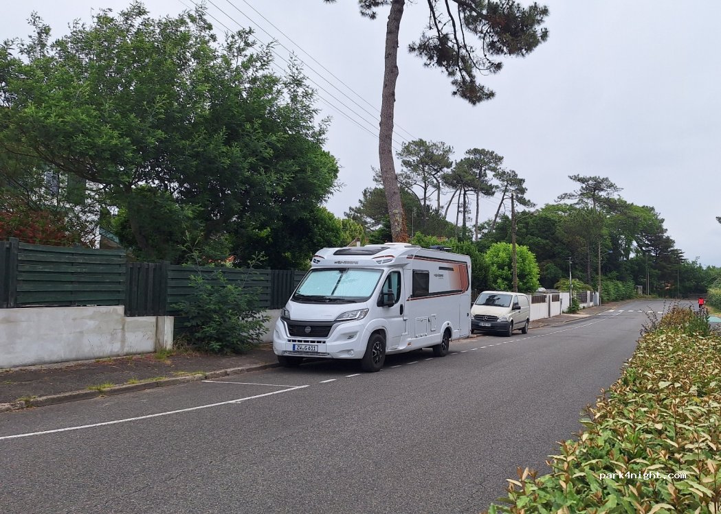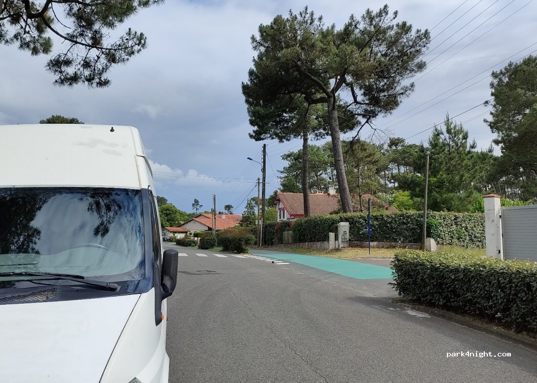 Funktioniert gut als Tagesparkplatz. Recht nah am schönen Dünenstrand südlich des Stadtzentrums. Ca. 5-10 Minuten Fußweg. Bis zum Stadtzentrum (Hafen) von Capbreton ca. 15-20 Minuten zu Fuß.