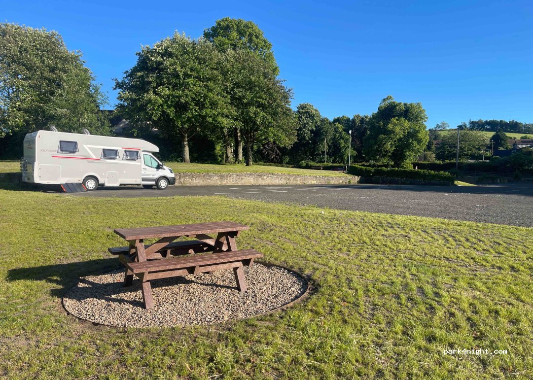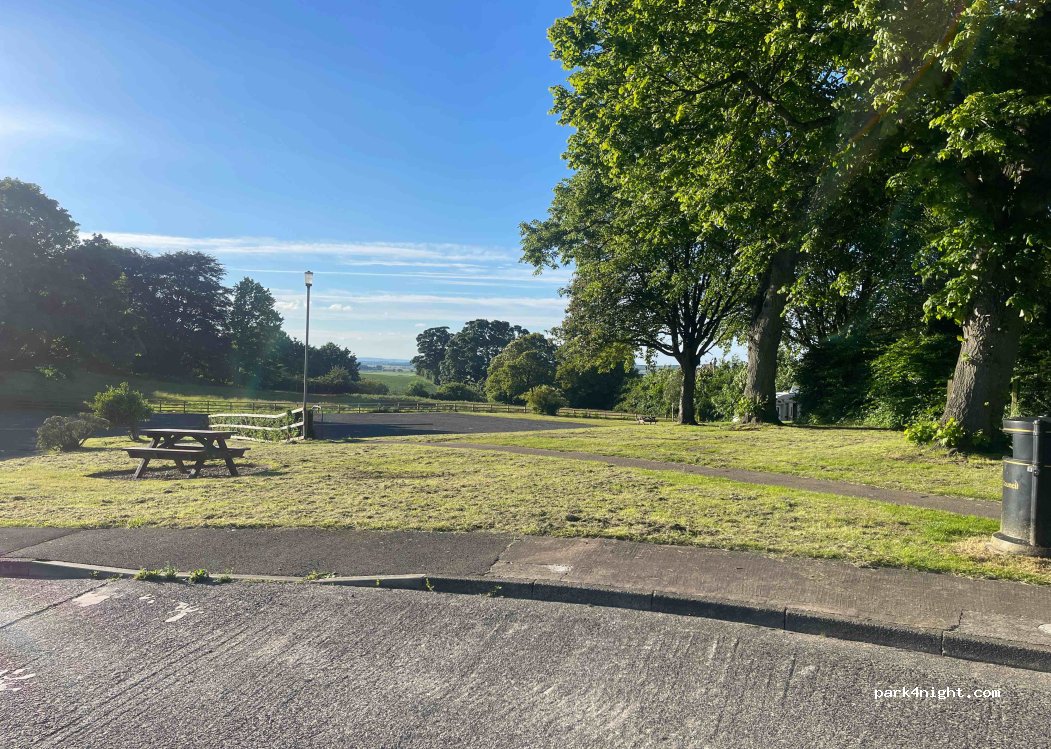 Früher war hier die Wooler First School / SureStart Children’s Centre, aber die Stadtverwaltung hat nach dem Abriss der Gebäude einen großen kostenlosen Parkplatz geschaffen. Es gibt Mülleimer, Picknickbänke, Rasenflächen, um mit den Hunden spazieren zu gehen, und ebene Parkplätze für viele, viele Lieferwagen. Am 24. Juni wurde es als Langzeitparkplatz ohne Beschilderung für Einschränkungen, Gebühren usw. und ohne Höhenbegrenzungen beworben. Wir hatten den ganzen Platz für uns alleine, ein erstaunlich versteckter Ort.