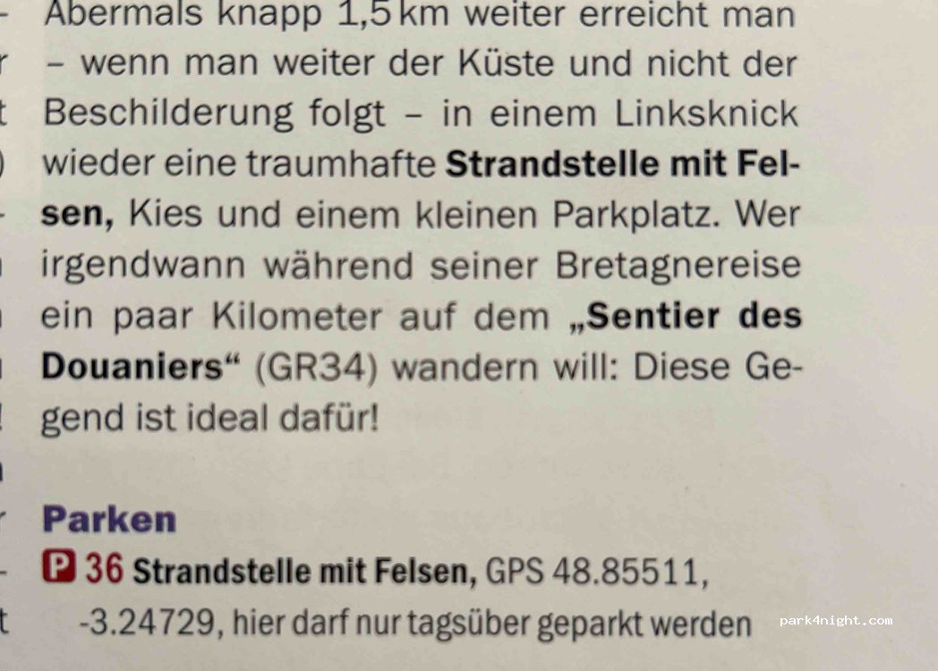 Un très bel endroit, idéal avec enfants car accés plage. Malheureusement encore une interdiction de nuit que nous avons bravé en conscience étant contre les privatisations du littoral. Passage de l'agent municipal. pas d'amende mais énonce les amendes encourues comme pollution des sols parce qu'on a posé notre bassine de vaisselle sale dehors. Pour info il fait sa tournée de 7h à 9h.