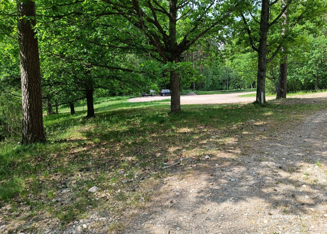 Die normale Zufahrt zu dem Platz ist 1 km vor Ankunft gesperrt. Dort gibt es einen Parkplatz. Die Beschilderung dort: P für Parkplatz und ein durchgestrichenes Zelt für Camping verboten. Wir sind weitergefahren.