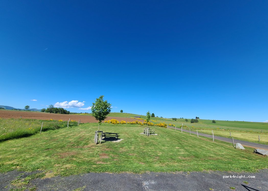 Petit parking avec très peu de passage la nuit. Promenade sur petit route à proximité avec de belles vues sur les monts. Pas de problème pour les campings car.