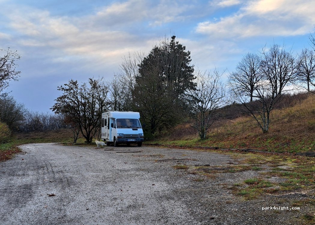 ein sehr ruhiger, wenig frequentierte Platz. die Polizei war dort, aber sie wollte nichts von uns, sondern nur von einem geparkten Auto, was wohl schon länger dort stand. etwas oberhalb des parkplatzes ist eine Bank mit einer herrlichen Aussicht und einem Sonnenuntergang über der Stadt.