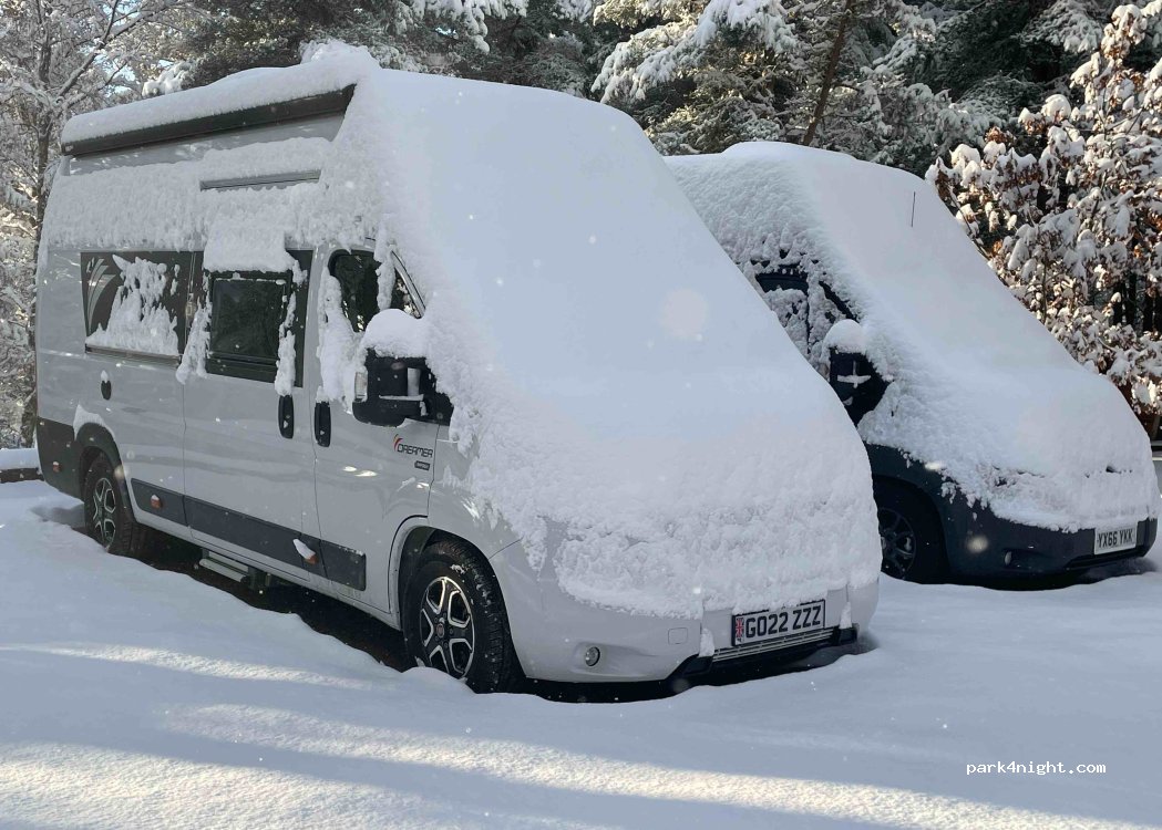 contrairement au 1er commentaire, Maps nous a emmené au site. Les 5 places Van sont un simple parking gravillonné face à la reception de ce qui est un site de petites cabines en bois. Sanitaires corrects et propres. 32 Euros pour un Van 2 adultes, avec électricité et wifi. C'est un peu chère quand même pour une place de parking, mais comme nous y sommes seuls, ça va.