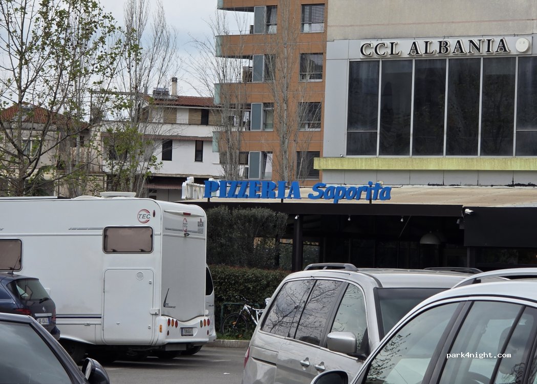Bon parking pour visiter la ville, nous y avons passé la nuit les jeunes ont joué au basket jusqu’à 22h00 après plus de bruits, nuit calme . La première photo du restaurant n’existe plus il a été démoli ce repérer avec la pizzeria à côté du parking, nous avons payé 500 lek n’accepte pas les € pour 24h00