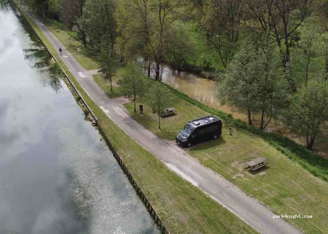 Entre le canal de Bourgogne et l'Ouche, 3 à 4 emplacements très agréables. Tables de pique-nique, pompe à eau et poubelles.