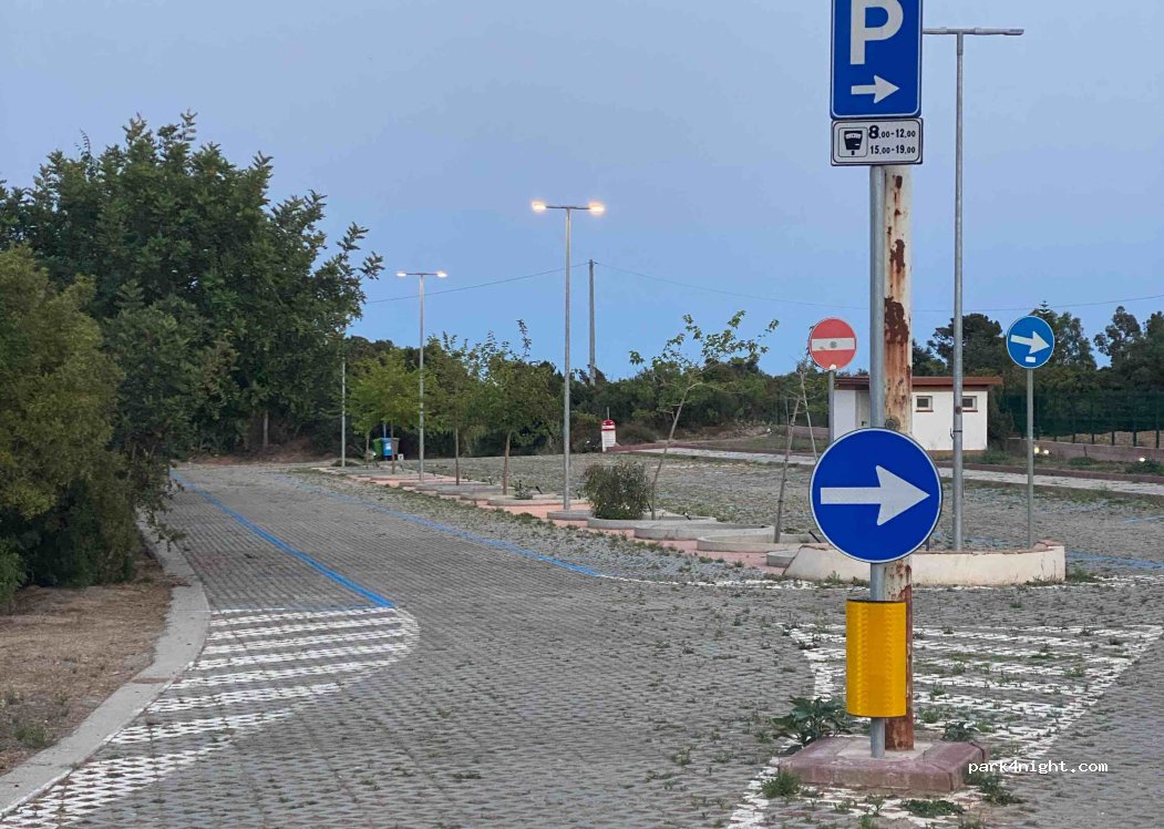 Car park for access to the nearby beach, lit and quite quiet, 50 meters away from the main road, at the beginning of June 2024 there are blue lines but there is no payment system, it is not clear whether it will become paid in the future.