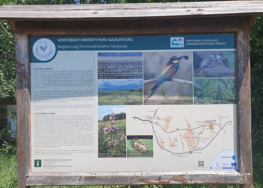 Nice parking lot with access to the national park. Steppe biotope. Right next to a czarda with cheap food. Please leave it clean.