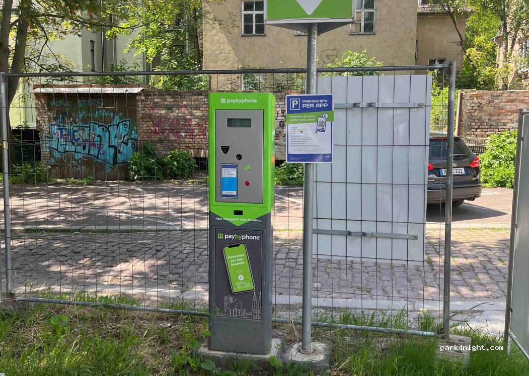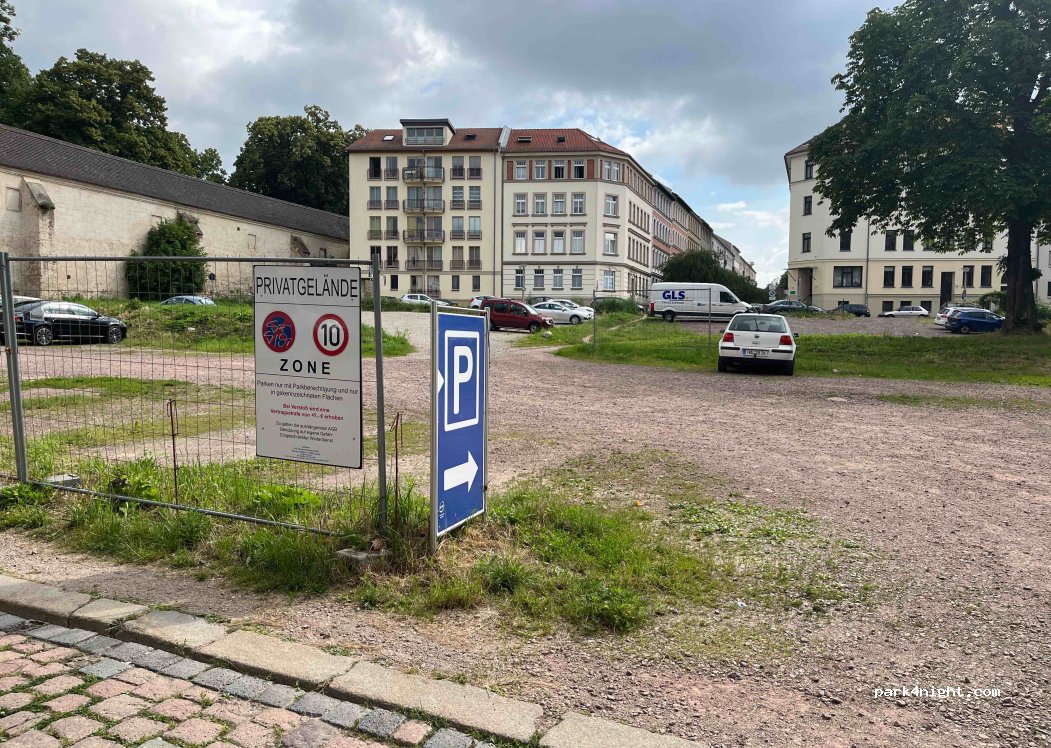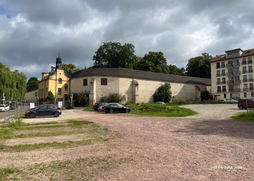 Parking space on a vacant lot near the city center, payable with a parking ticket machine, unclear public and private signage: free at night and on Sundays. ATTENTION: While the parking spaces on the surrounding public streets can be paid for with a parking app, you have to get a parking ticket from the machine to park on the vacant lot and can also pay there with a (different!) payment app. If you don't do this and therefore don't have a parking ticket, you can be fined €45. This happened to me because I booked with the parking app. The information on this seems to contradict each other. Many spaces are on a slope due to the hillside location and are therefore not suitable for overnight stays. Other vacant lots nearby are signposted as parking spaces at similar prices.