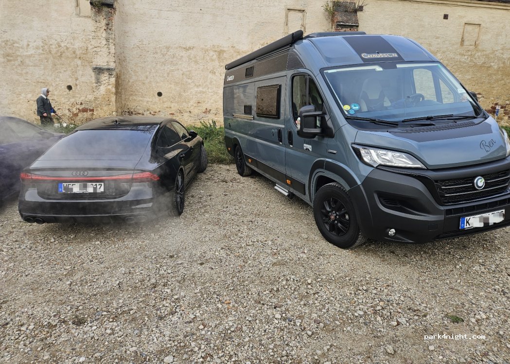Place de parking sur friche proche du centre ville, payante avec un automate, signalisation publique et privée peu claire : gratuite la nuit et le dimanche. ATTENTION : Alors que les places de stationnement dans les rues publiques environnantes peuvent être payées avec une application de stationnement, pour vous garer sur la friche industrielle, vous devez obtenir un ticket de stationnement à l'automate et pouvez également y payer avec une (autre !) application de paiement. Si vous ne le faites pas et n'avez donc pas de permis de stationnement, vous risquez une amende de 45 €. Cela m'est arrivé parce que j'avais réservé en utilisant l'application de stationnement. Les informations à ce sujet semblent se contredire. De nombreux endroits sont en pente en raison de la pente et ne conviennent donc pas aux nuitées. D'autres friches industrielles à proximité sont signalées comme des places de stationnement à des prix similaires.