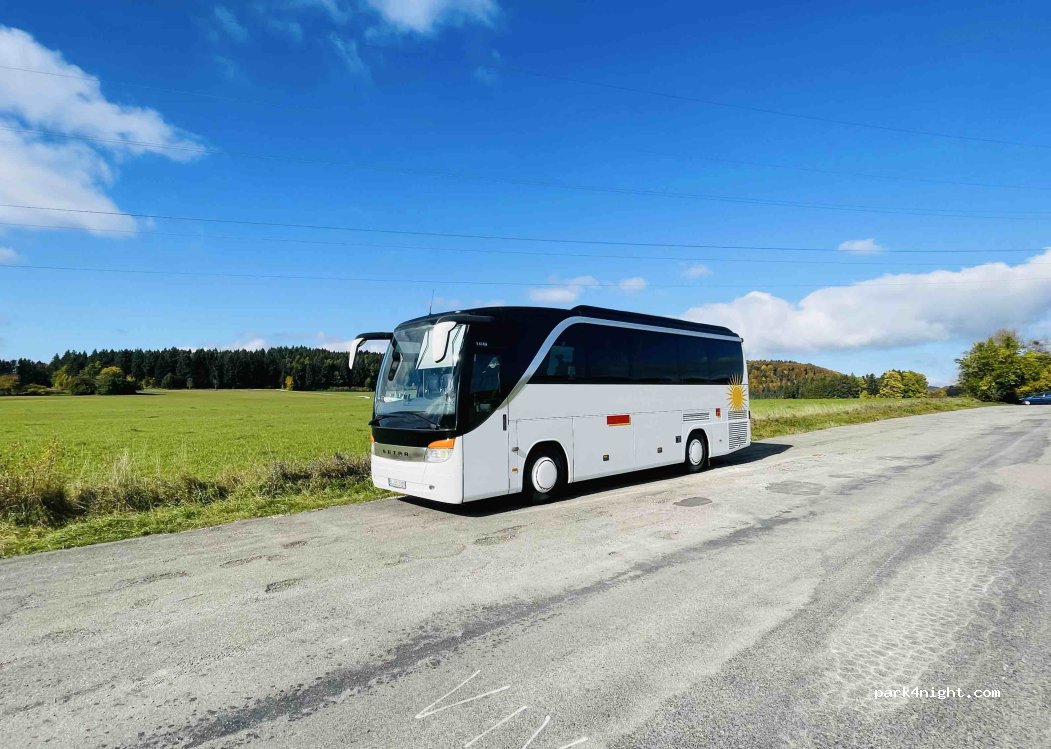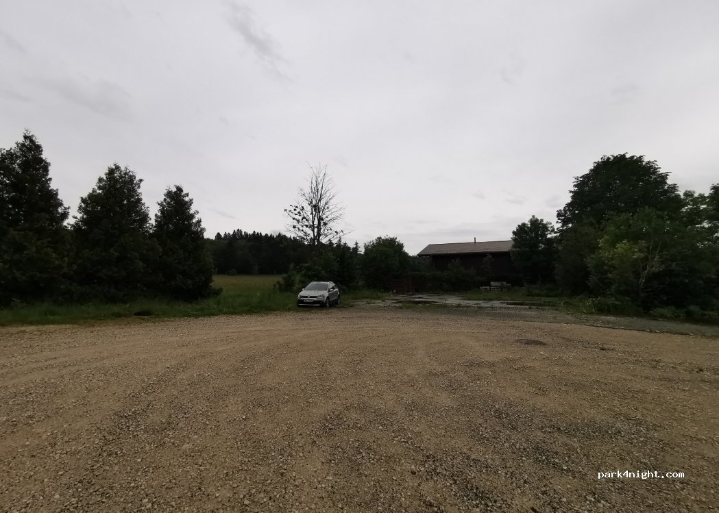 Wir standen gegenüber auf der anderen Straßenseite. Dort ist ein geschotterter Wanderparkplatz. Er ist auch gut mit großen Fahrzeugen anzufahren